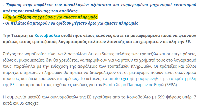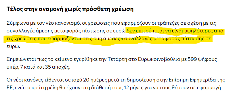 5) Ο ΠΘ Κυριάκος Μητσοτάκης έρχεται λίγες εβδομάδες πριν την καταληκτική ημερομηνία εφαρμογής του κανονισμού και παρουσιάζει ως επιτυχία της κυβέρνησης και δείγμα στιβαρής διακυβέρνησης την μείωση των χρεώσεων, δηλαδή στην ουσία την εφαρμογή του (υποχρεωτικού) κανονισμού.