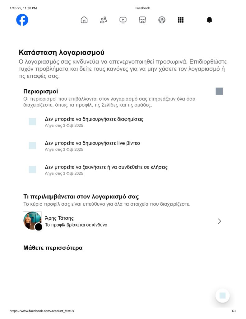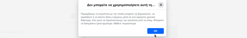 ΥΓ 9. Έτσι για επιβεβαίωση ο φίλος μας ο Ζούκερμπεργκ πάνω που ολοκλήρωνα το άρθρο μου έστειλε διπλή προειδοποίηση ότι:
