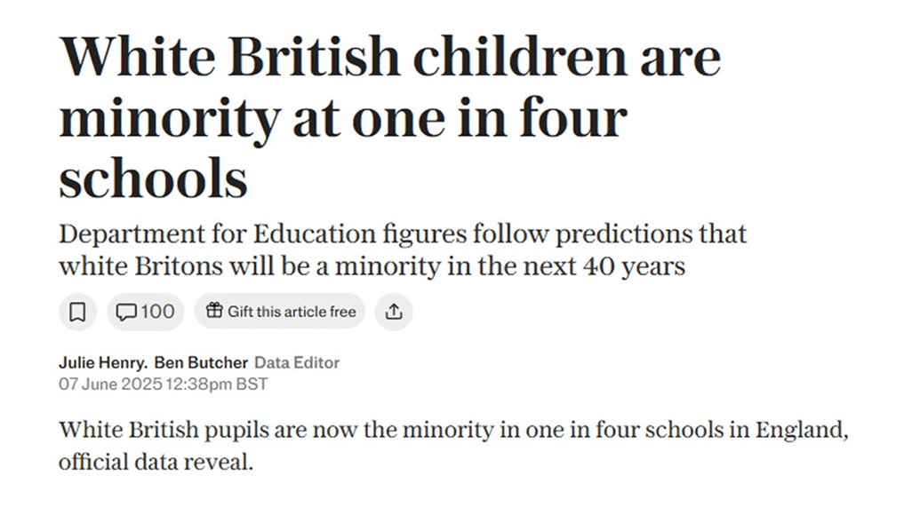 Στη Βρετανία, η αλλαγή είναι βάναυσα σαφής. Τα λευκά παιδιά από τη Βρετανία αποτελούν πλέον μειονότητα σε ένα στα τέσσερα σχολεία. Πριν από λίγα χρόνια, ο θρύλος της κωμωδίας Τζον Κλιζ παραδέχτηκε ότι δεν θεωρούσε πλέον το Λονδίνο μια πραγματικά αγγλική πόλη, έτσι που είχε γίνει. Αυτό που κάποτε περιοριζόταν στην πρωτεύουσα τώρα όμως εξαπλώνεται και στις επαρχίες. Δώστε του μερικές δεκαετίες και αυτό που συνέβη στο Λονδίνο θα έχει συμβεί σε όλο το Ηνωμένο Βασίλειο. Αν αυτό δεν είναι αντικατάσταση, τότε τι είναι; Ο πολιτισμός δεν είναι αθάνατος. Αν απομακρυνθείς για αρκετό καιρό, τίποτα δεν θα μείνει.